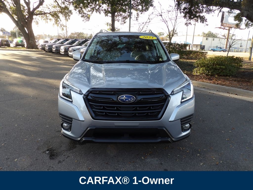 Certified. Ice Silver Metallic 2023 Subaru Forester Premium AWD Lineartronic CVT 2.5L 4-Cylinder DOHC 16V