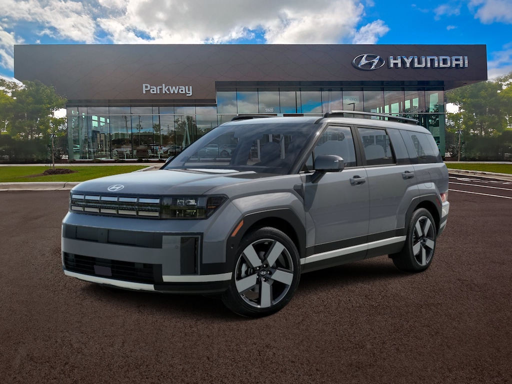 Hampton Gray 2026 Hyundai Santa Fe Hybrid Limited FWD 6-Speed Automatic with Shiftronic I4 I4, ABS brakes, Active Cruise Control, Alloy wheels, Electronic Stability Control, Emergency communication system, Front dual zone A/C, Heated & Ventilated Front Bucket Seats, Heated door mirrors, Heated front seats, Heated rear seats, Illuminated entry, Leather Seat Trim, Low tire pressure warning, Navigation System, Power Liftgate, Power moonroof, Remote keyless entry, Traction control.