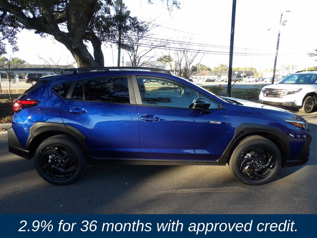 Sapphire Blue Pearl 2026 Subaru Crosstrek Hybrid Sport AWD Lineartronic CVT 2.5L 4-Cylinder DOHC 16V 2.5L 4-Cylinder DOHC 16V, Active Cruise Control, Exterior Parking Camera Rear, Fully automatic headlights, Power driver seat, Power moonroof, Remote Keyless Entry, Steering wheel mounted audio controls.