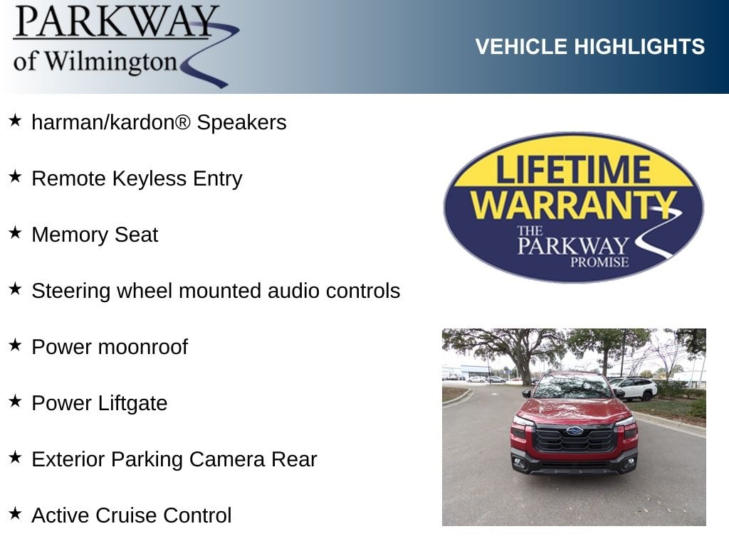 Crimson Red Pearl 2026 Subaru Outback Limited AWD CVT Lineartronic 2.5L 4-Cylinder DOHC 16V Active Cruise Control, Apple Carplay, Exterior Parking Camera Rear, harman/kardon® Speakers, Memory Seat, Power Liftgate, Power moonroof, Remote Keyless Entry, Steering wheel mounted audio controls.